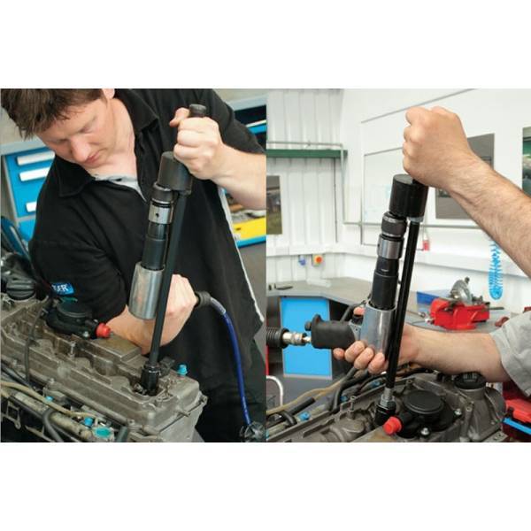 Este adaptador utiliza el impacto del martillo neumático además utiliza la vibración y consigue extraer los inyectores rápido y con el menor esfuerzo.