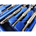 Para facilitar su almacenamiento y transporte, el juego viene en un resistente maletín de plástico de impacto. Con unas dimensiones de 50 x 10 x 5 cm, este maletín permite tener todas las herramientas ordenadas y protegidas, ocupando el mínimo espacio. Las brocas están marcadas y numeradas por grosor para facilitar su identificación.