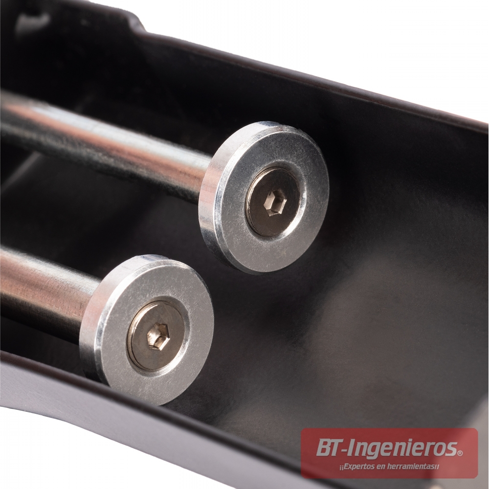 Incluye botón de desbloqueo y empuñadura para deslizar fácilmente y regular la altura de los empujadores.