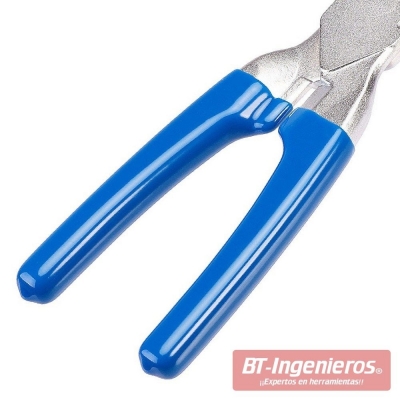 Equipa un sistema de resorte y mangos engomados con vinilo antideslizante. Las mordazas se pueden girar en 360º fácilmente y permite acceder más rápido a las zonas con obstáculos para extraer e instalar la abrazadera.