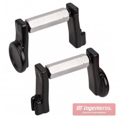 La herramienta se sujeta firmemente entre la llanta y el guardabarros del vehículo, permitiendo ajustes precisos y seguros en menos tiempo. Es la solución ideal para optimizar el trabajo en el taller y mejorar la calidad del servicio ofrecido a los clientes.