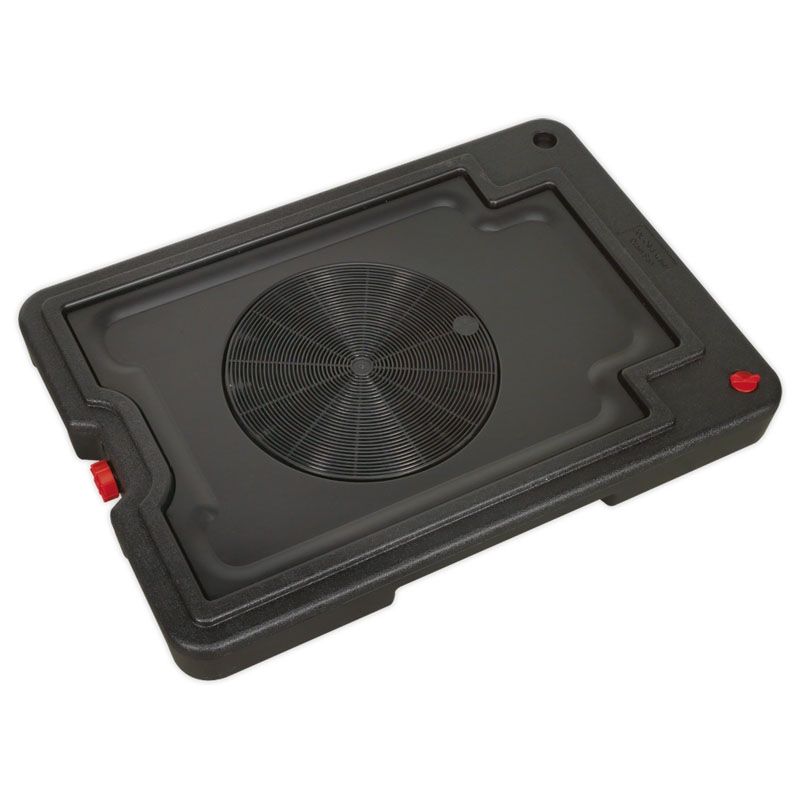 Incluye una rejilla que evita la entrada de desechos en el depósito y permite drenar filtros de aceite o piezas de motor aceitosas durante el desmontaje.