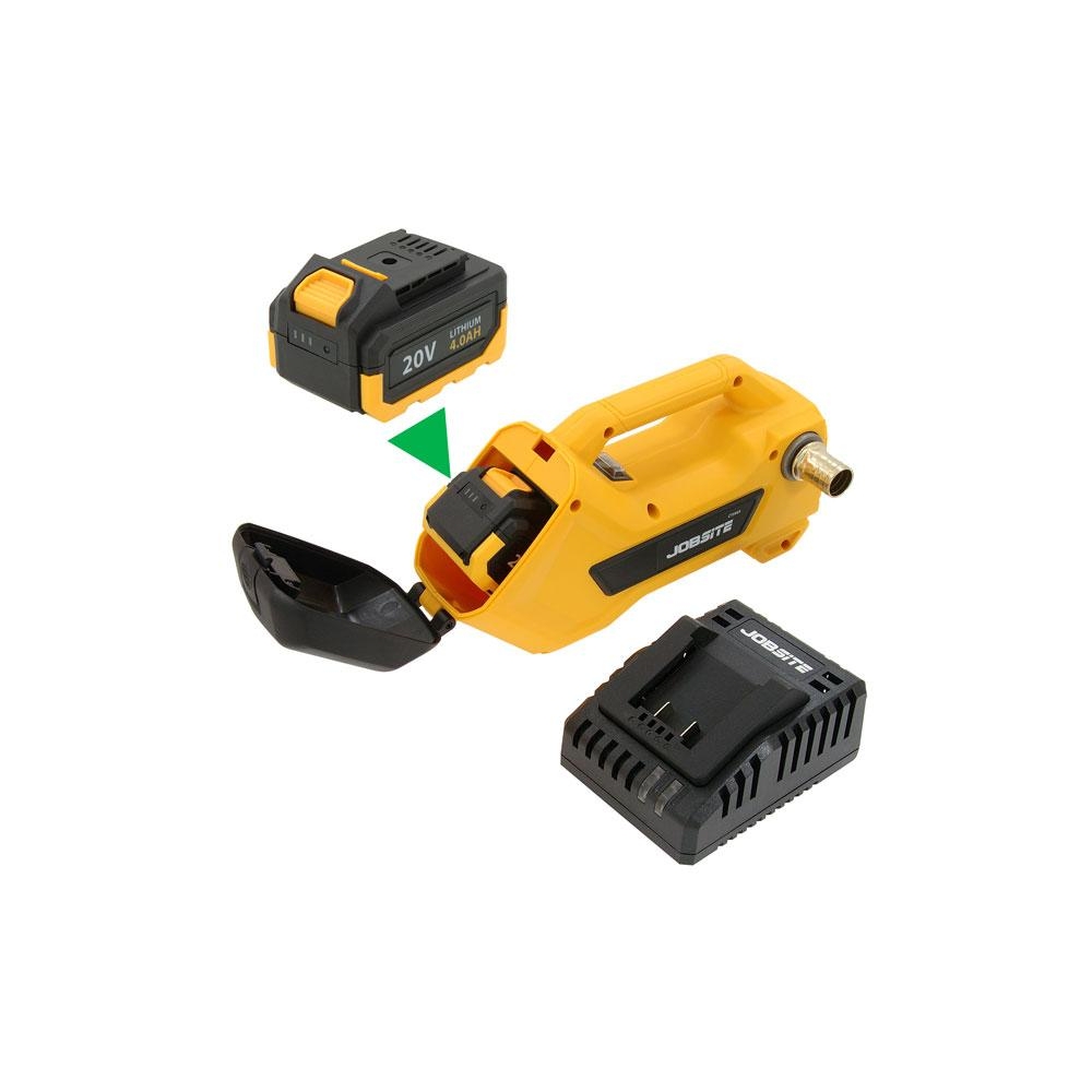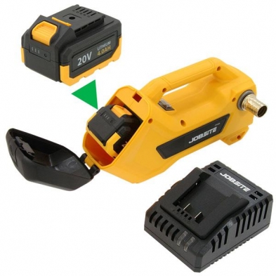 La bomba de trasvase inalámbrica Jobsite 20V está diseñada para bombear agua limpia y diésel, u otros líquidos no inflamables ni corrosivos, de forma rápida, segura y sin necesidad de corriente eléctrica. Es ideal para vaciar calentadores, depósitos, bidones, tareas de riego o trasiego de líquidos no inflamables.