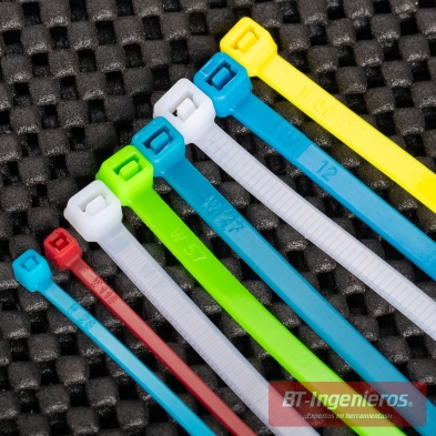 - Bridas blancas, amarillas y verdes de 190 x 4.8 mm (Longitud x ancho).