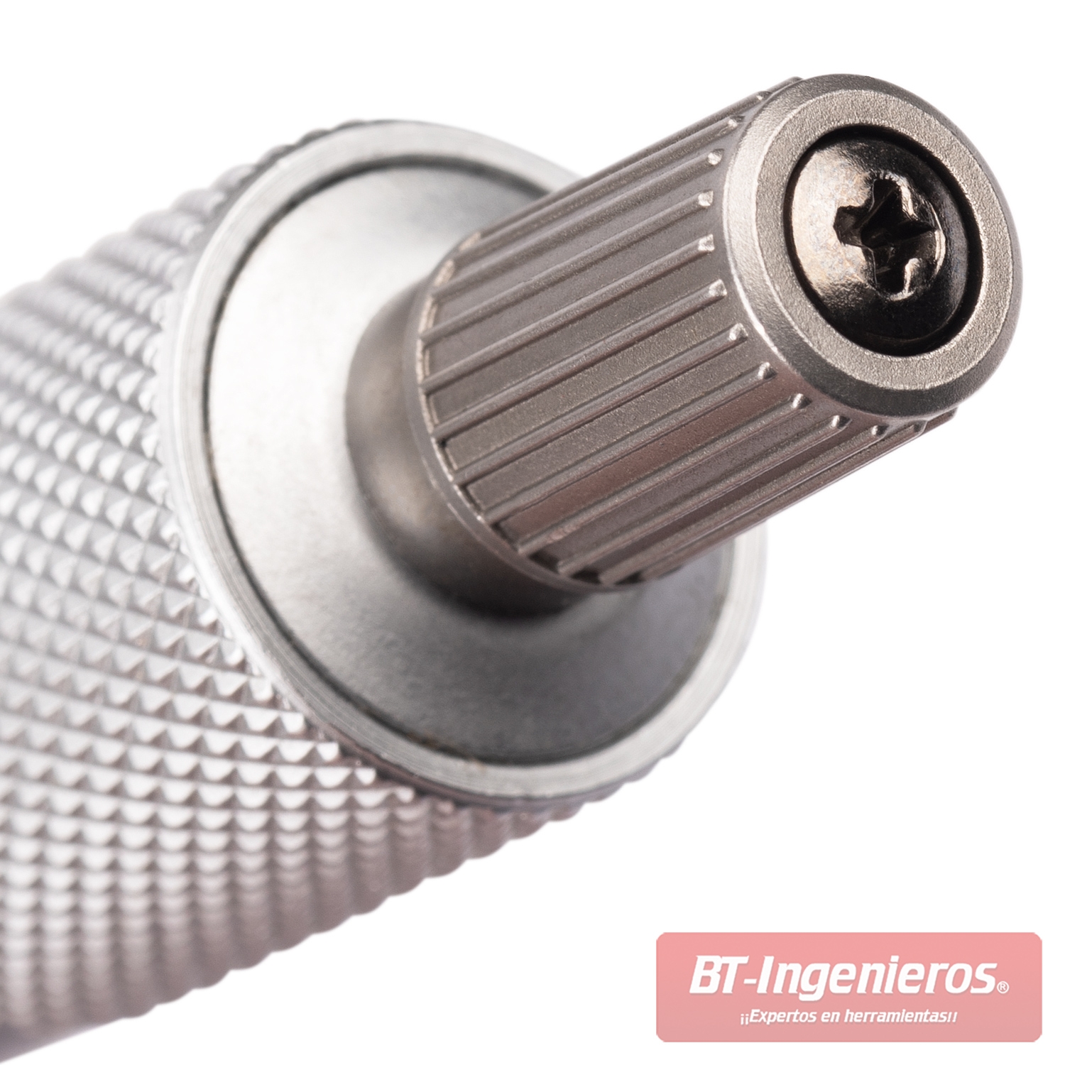 Micrómetro externo Piramide PRO® diseñado para realizar mediciones exactas de pequeños componentes y piezas en un rango de 50 a 75 mm.