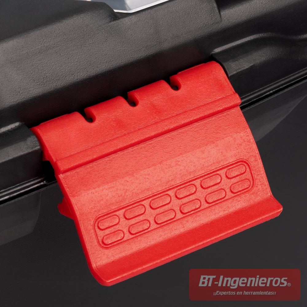 Su construcción de polipropileno no solo resiste los impactos, sino que también protege contra la abrasión y la corrosión, extendiendo la vida útil del producto. La caja cuenta con un tamaño amplio para guardar y organizar las herramientas más necesarias en cada trabajo.