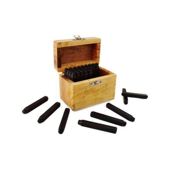 Juego de sellos de letras y números de 6 mm. Para marcar de manera precisa sobre piezas de acero. Incluye 27 letras de la A a la Z en mayúsculas, 8 números y el símbolo &. Piezas templadas y endurecidas para una alta duración y resistencia.