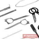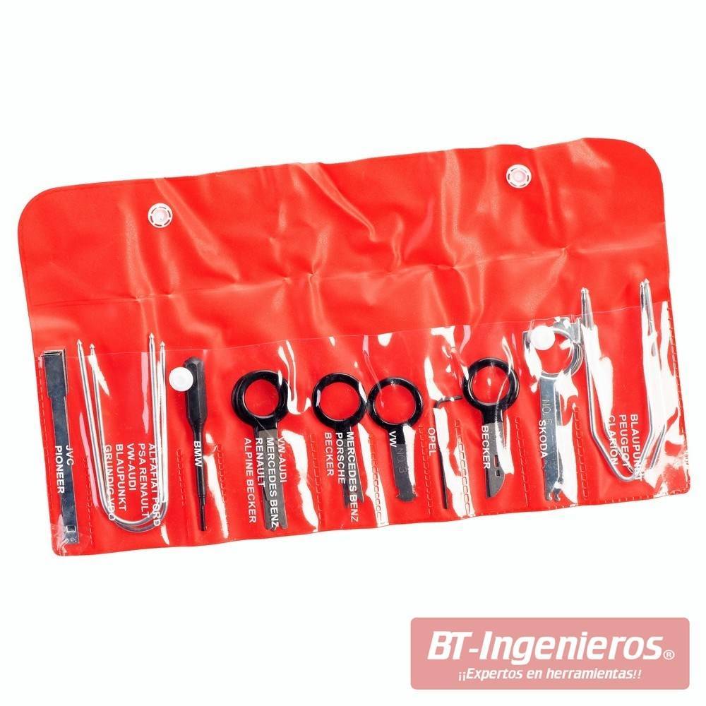Llaves especiales para desmontar radios. Posibilitan la extracción de radios en los modelos más comunes del mercado.Incluye llaves especialmente diseñadas, ganchos en U y V, llave hexagonal, llave pentagonal y llave en L para realizar la extracción tirando de los útiles.