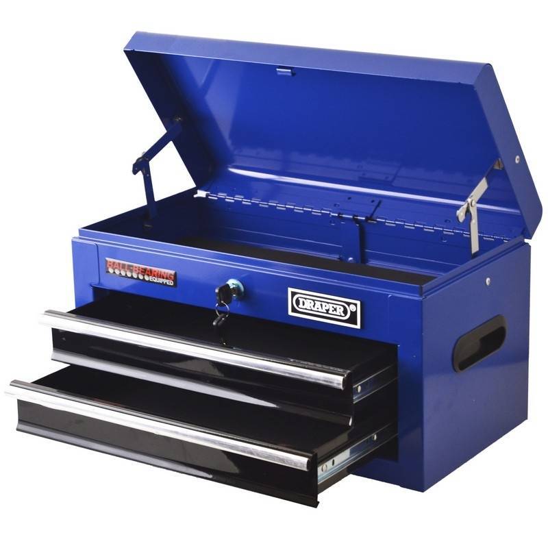 Cofre de herramientas. Caja de herramientas metálica con 2 cajones. Organiza las herramientas en sus cajones o sobre el cajón superior. Perfecto para situar sobre armarios o sobre el banco de trabajo.