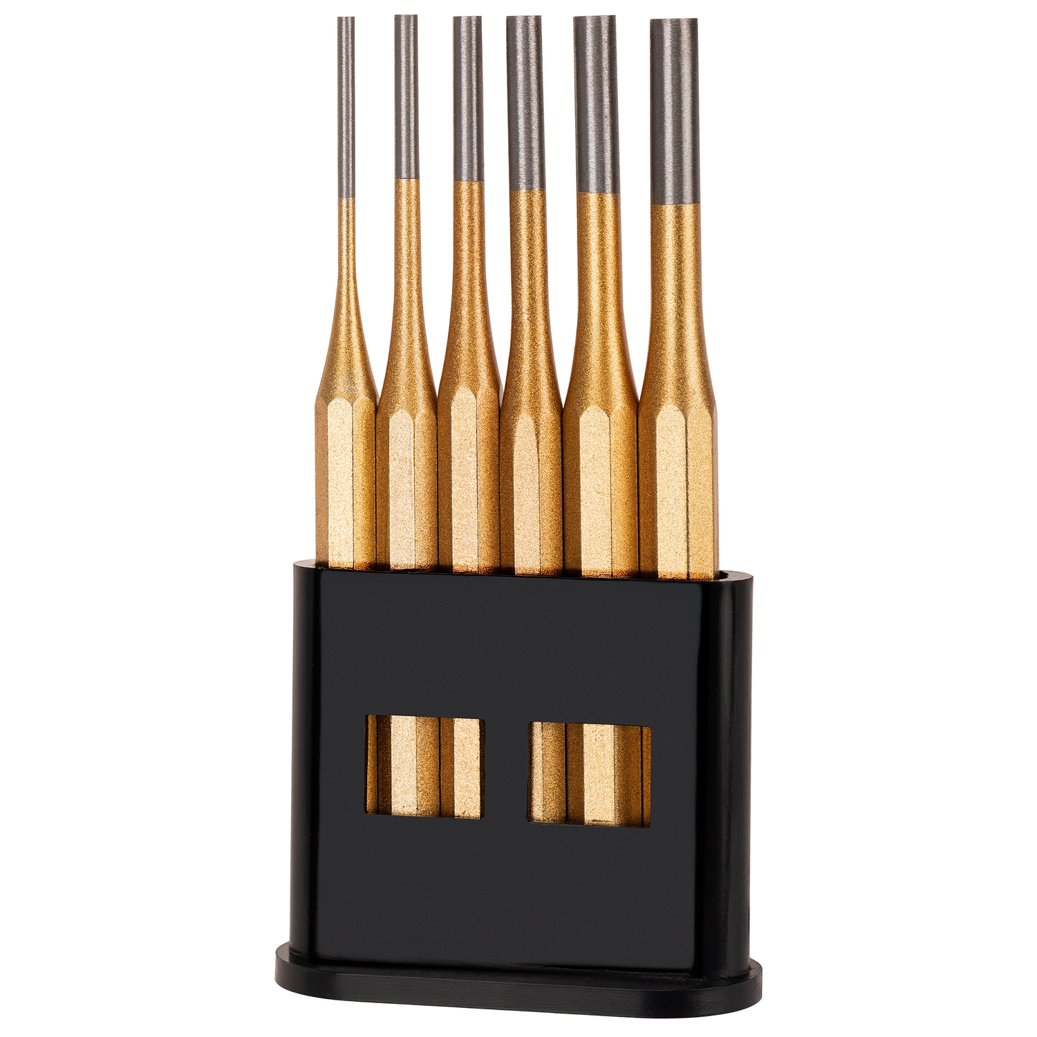 Juego de botadores CR-V 6 piezas 3–8 mm – Punzones 150 mm con puntas pulidas y soporte colgable