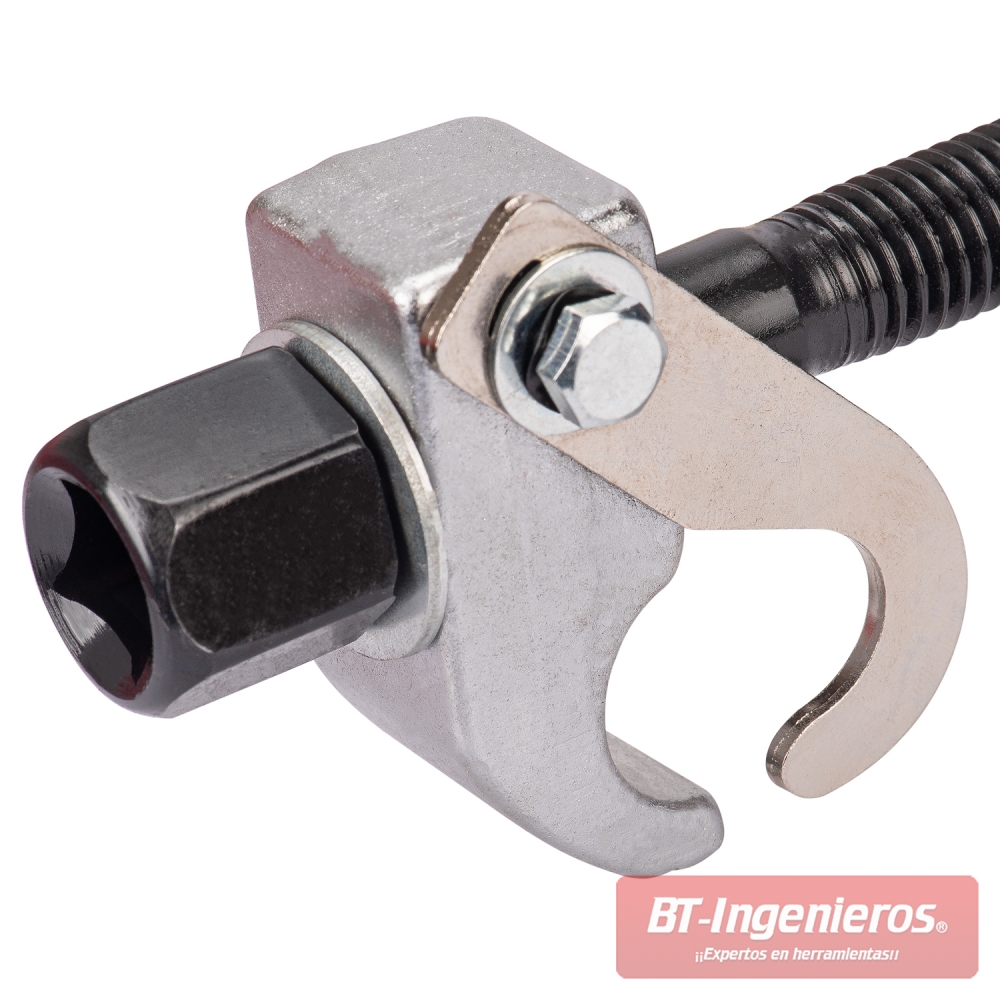 Juego compresor de muelles amortiguadores de gama profesional, equipado con 3 piezas. Con sistema de cierre de garras, ajustable al grosor del muelle. Permiten realizar una compresión controlada de muelles helicoidales antes de extraer o reemplazar los amortiguadores.