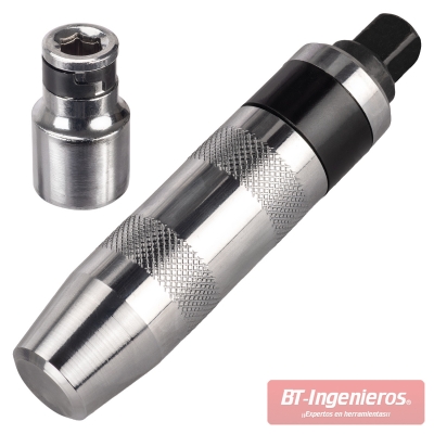 Destornillador a golpe para puntas bit y vasos de 1/2". Kit en caja de metal con 10 puntas. Incluye una serie de virtudes que lo disponen para uso diario.