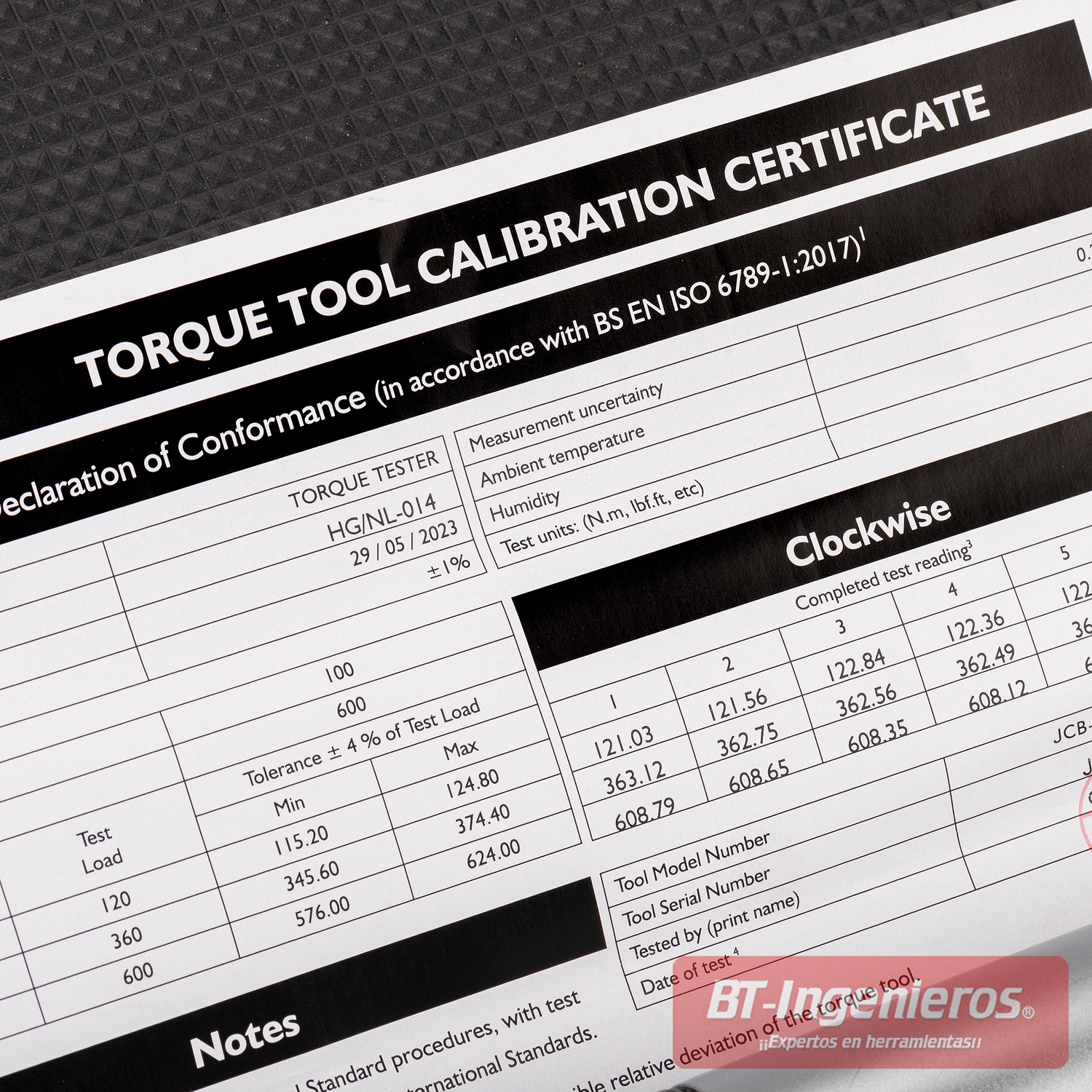 Llave Dinamométrica JCB 3/4" – 100 a 600 Nm con Certificado ISO 6789