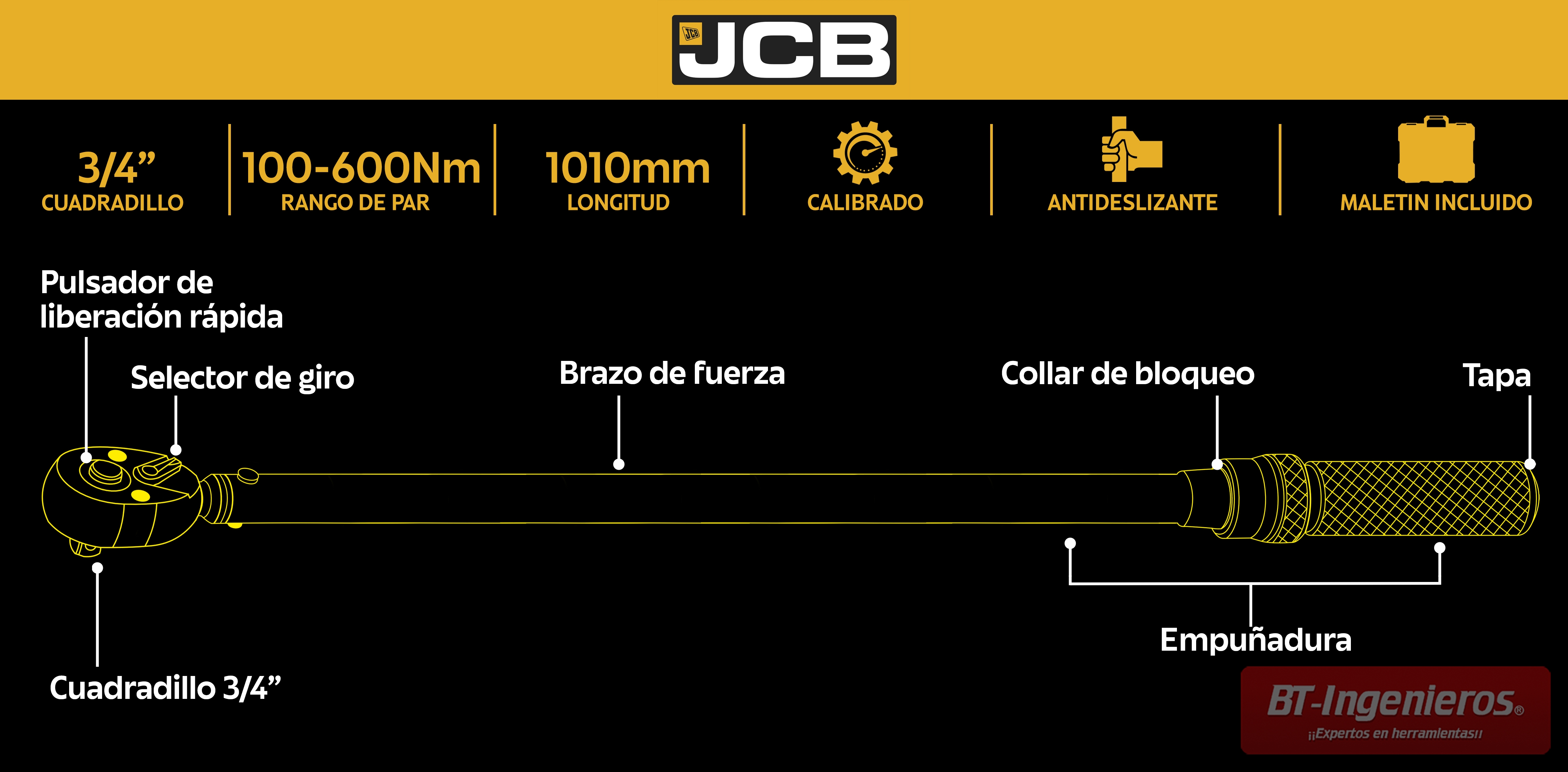 Llave dinamométrica 100 - 600Nm de 3/4'' JCB | 1.1 Metros