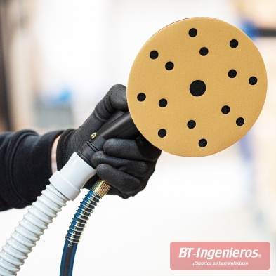 - Compatible con lijadoras eléctricas o neumáticas, con soporte Ø150 mm y conexión de velcro.