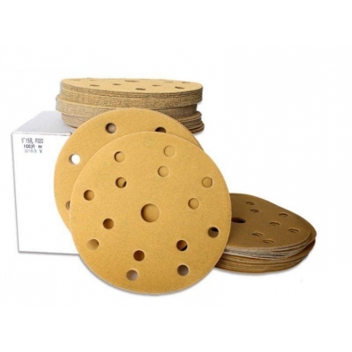 Pack con 100 discos de lija Gold Ø150 Mm & Grano 600. Para lijado profesional y nivelación de superficies de metal, pintura, masilla, fibra de vidrio, plástico o madera.