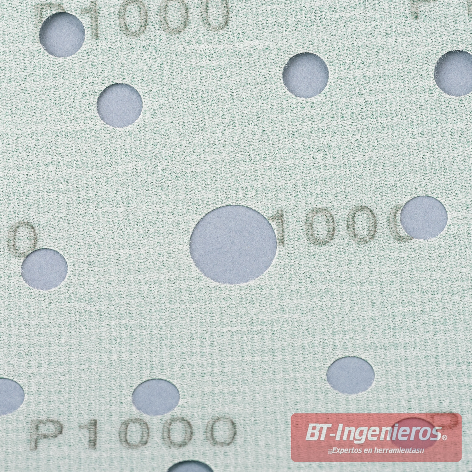Discos de lijado de óxido de aluminio Ø150 Mm & Grano 1000. Constituidos por respaldo de Film de poliéster, resistentes a desgarros y flexibles, proporcionando una mayor durabilidad en comparación con discos de base de papel.