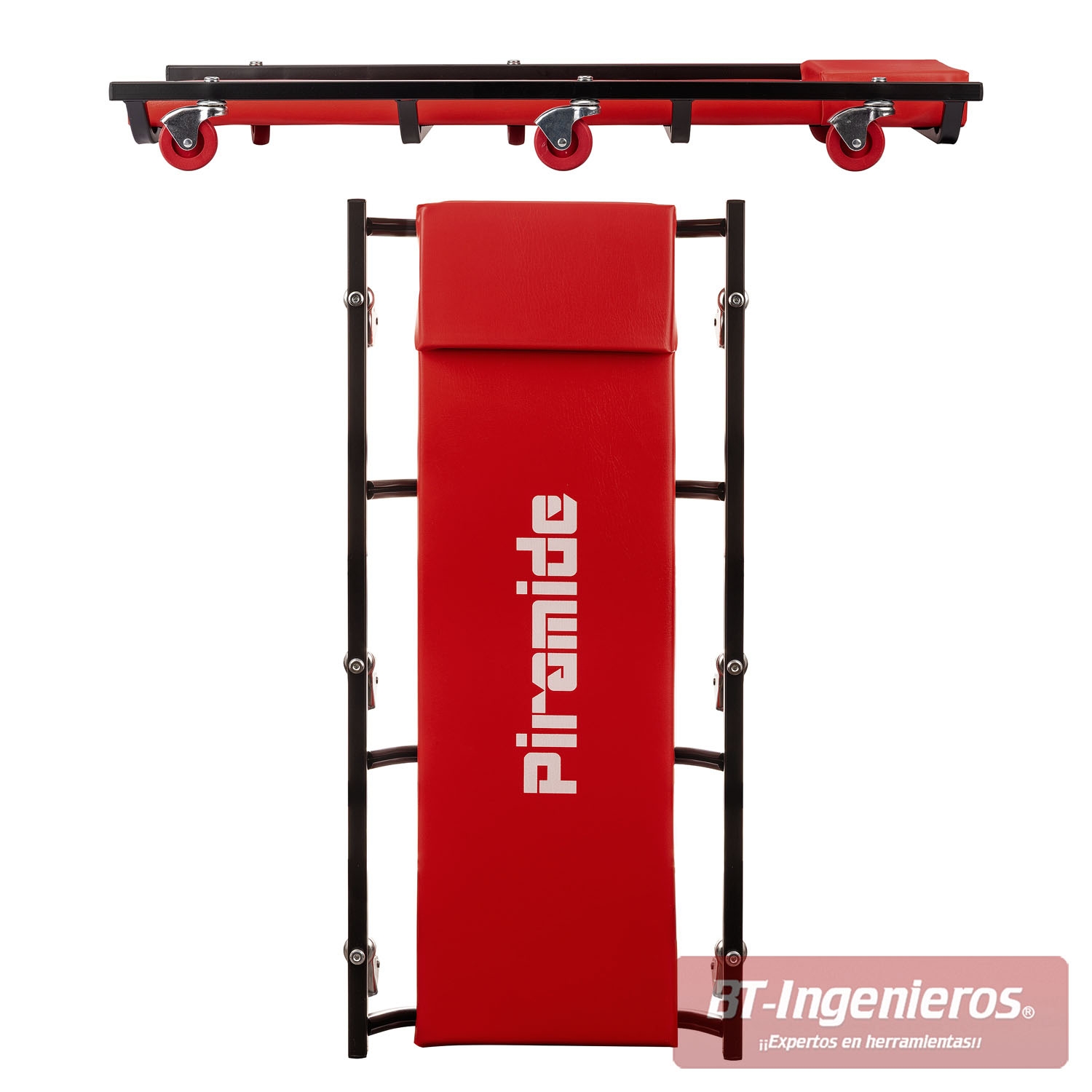La camilla de mecánico Piramide CMA920 está diseñada para ofrecer comodidad, movilidad y estabilidad durante los trabajos bajo el vehículo. Su estructura de acero, los acolchados de alta densidad y las 6 ruedas giratorias permiten desplazarse de forma suave y segura incluso en espacios reducidos.