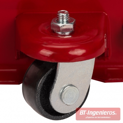 - Durabilidad profesional: acero robusto y rueda giratoria trasera.