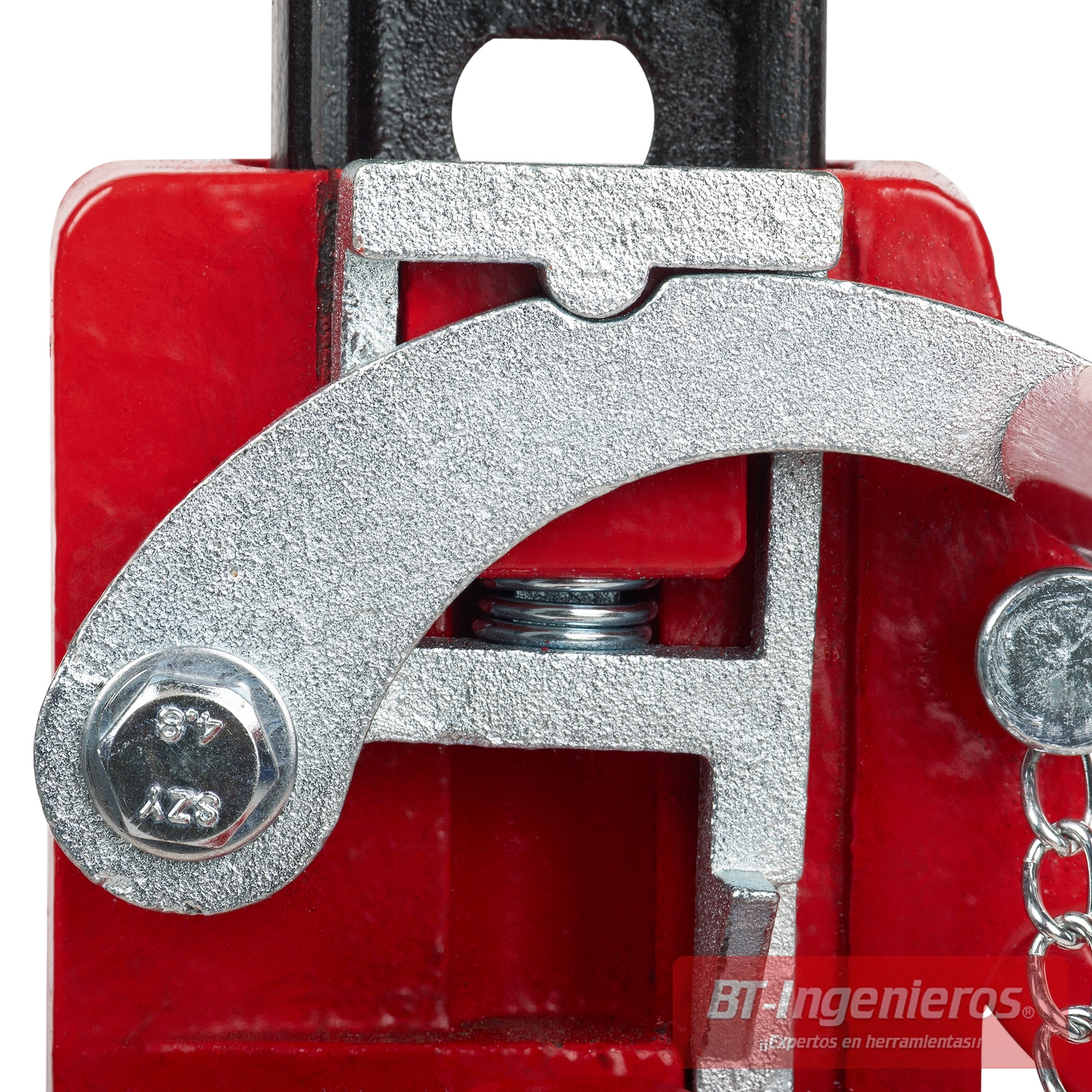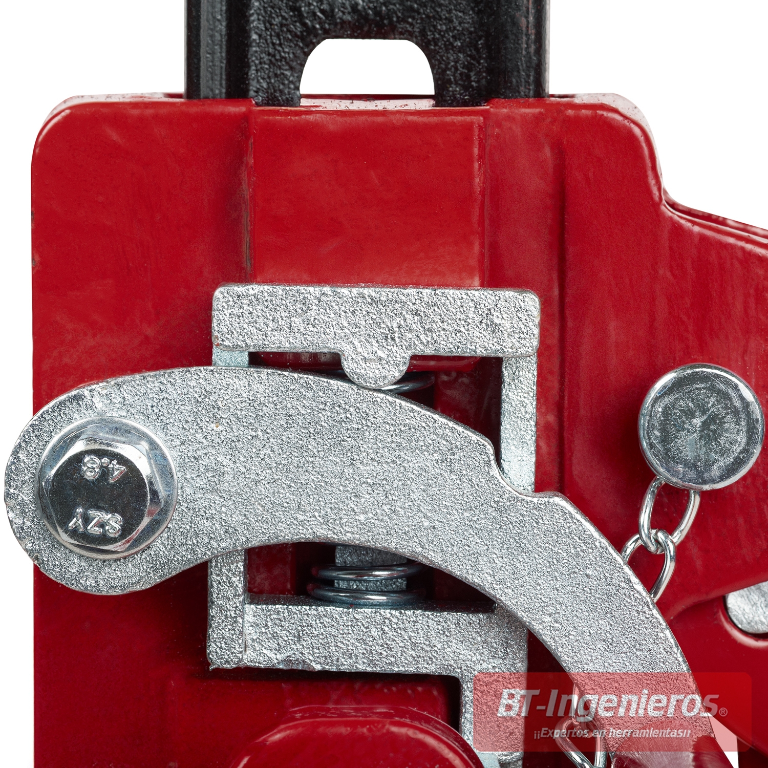 Fabricado en acero forjado de alta resistencia, incorpora un mecanismo de trinquete robusto, base estriada antideslizante y múltiples puntos de bloqueo para una elevación progresiva y estable.