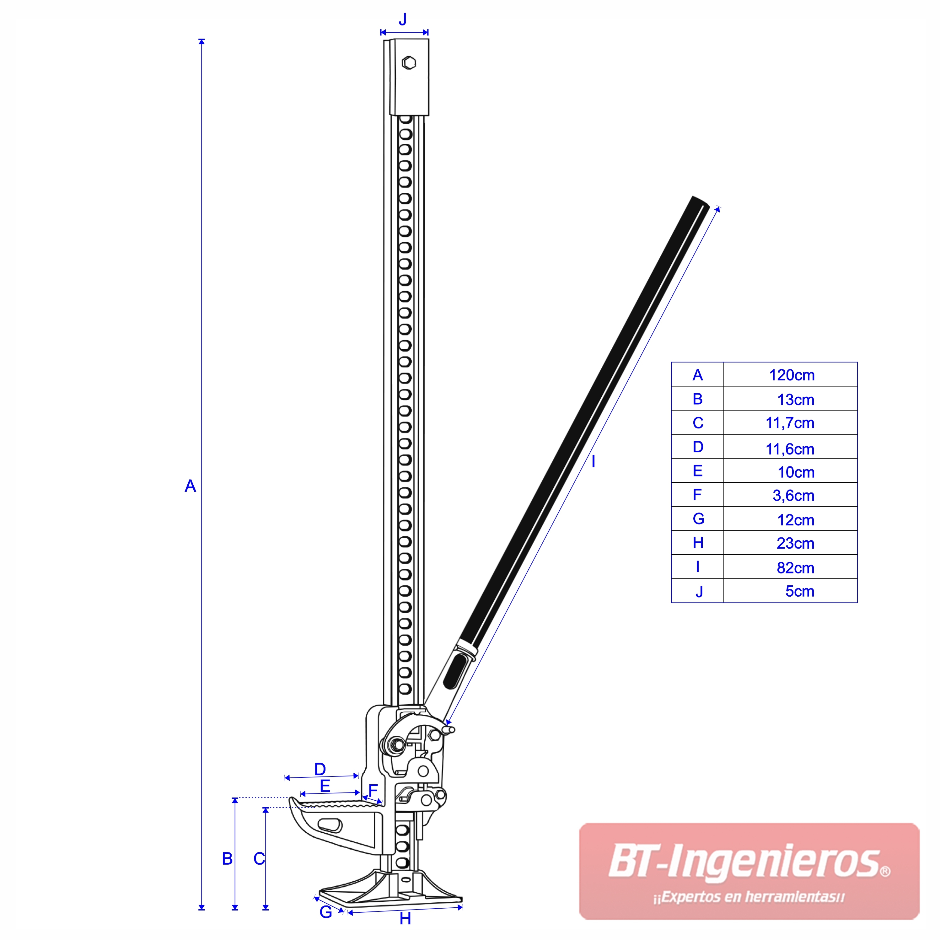 - - Palanca de 82 cm para mayor brazo de fuerza.