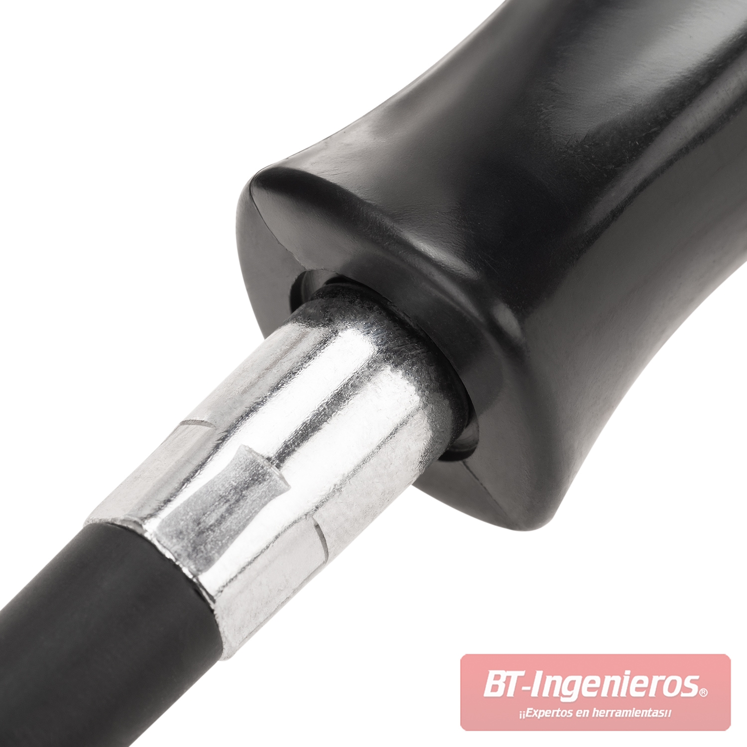 - Vástago flexible robusto que transmite la fuerza sin deformarse.