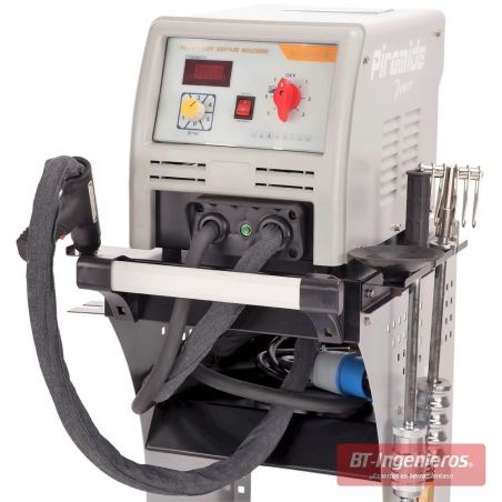 - Funciones incluidas: Soldadura por puntos, Soldadura por tracción con arandelas especiales, Remiendo (para realizar pequeños retoques) y Calentamiento y Calcado (rebajar los salientes sobrantes)