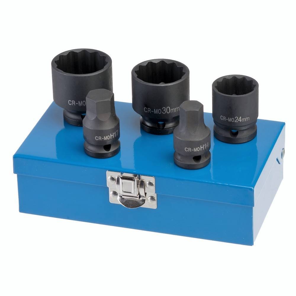 Juego profesional de llaves para la extracción de bujes de rueda, especialmente compatibles con vehículos Seat, Skoda, Audi y VW. Llaves de alta resistencia para trabajar con llaves de impacto a altos pares de apriete.