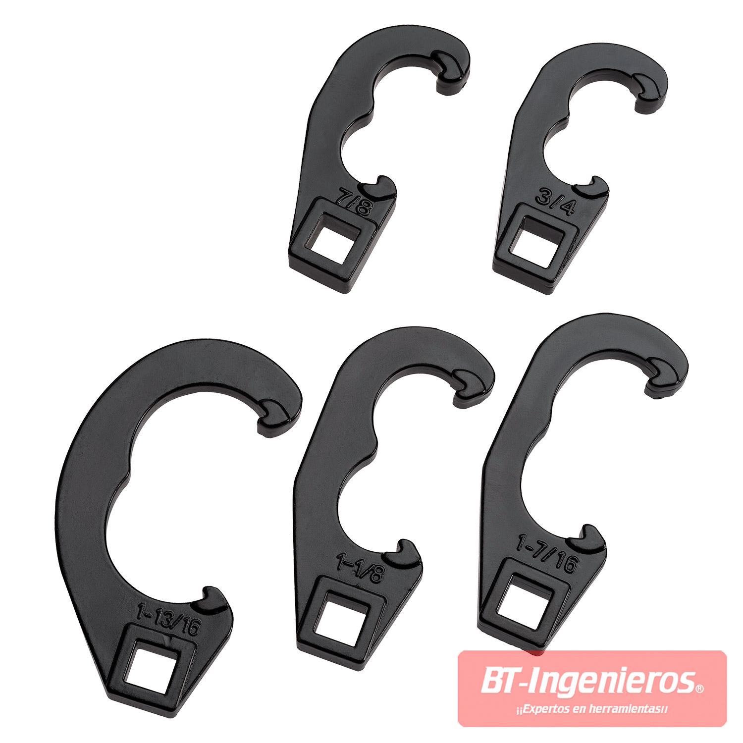 Se suministran 5 llaves de medidas 19 a 46 mm compatibles para mayoría de brazos de dirección pitman y barras de dirección de automóviles, furgonetas y camiones ligeros hasta 1 tonelada.