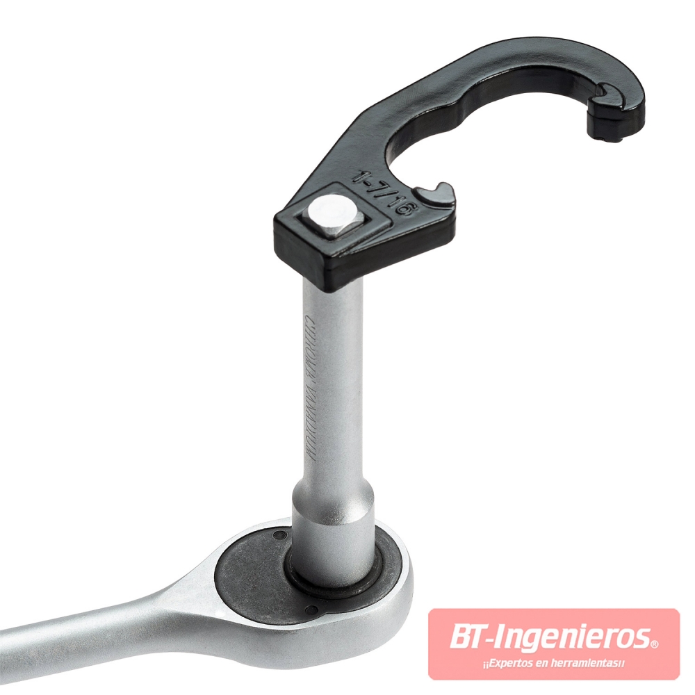 Llaves de ajuste o extracción de brazos de dirección pitman y barras de dirección, con diseño específico para accionamiento en espacios confinados y estrechos, permitiendo la rotación 360°, para la realización del trabajo de forma fácil y rápida, esencial para cambios de rótulas de dirección o alineación general de la dirección.