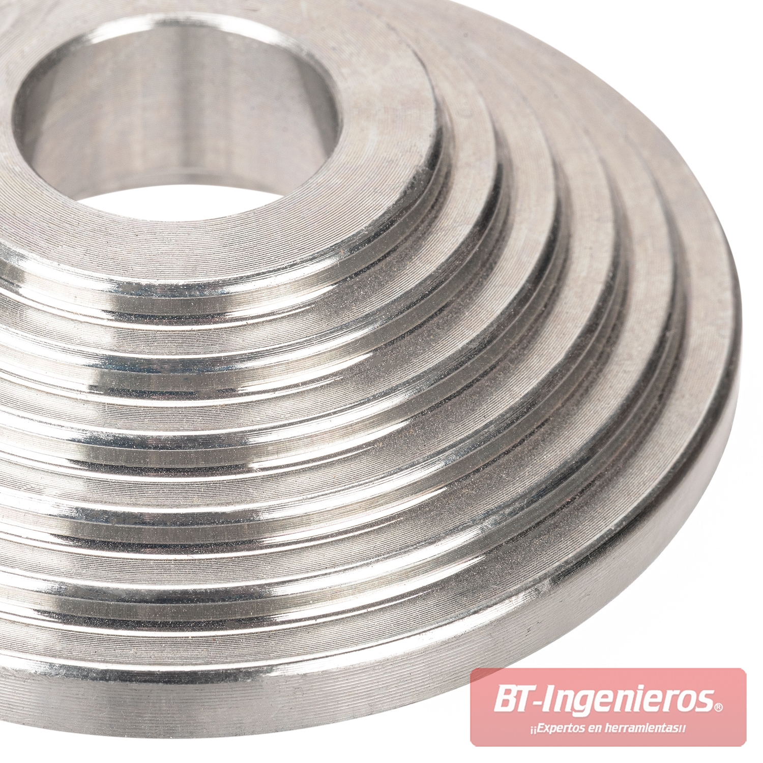 Diseñados para casar con cualquier manguito gracias a sus pasos concéntricos perfectamente mecanizados. Garantizan un apoyo uniforme y un empuje alineado.