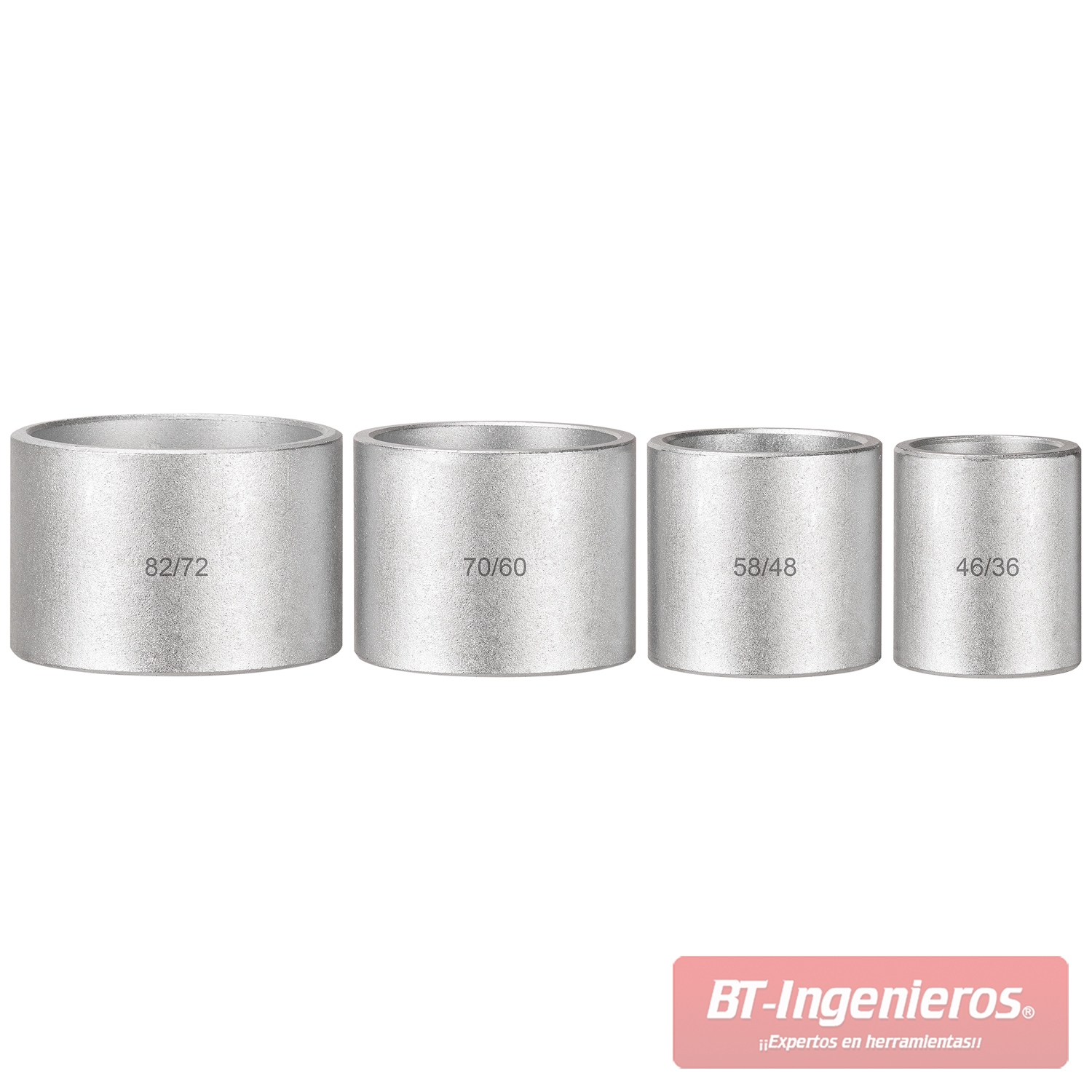 Diámetros interiores: 34 a 72 mm · Diámetros exteriores: 44 a 82 mm.