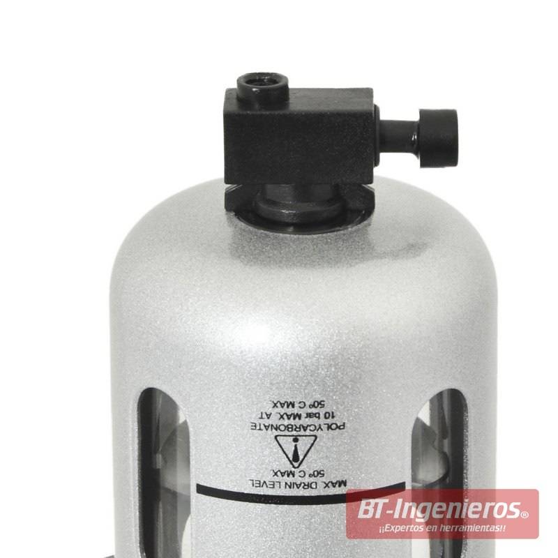 Filtro de aire para compresor de gama profesional adecuado para uso en líneas de aire de 1/2". Las líneas de 1/2" se utilizan en instalaciones industriales con compresores de alta capacidad, el filtro es perfecto para instalaciones en cabinas de pintura.