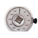 Medidor de ángulo para llave dinamométrica. Esta herramienta permite establecer la configuración de par indicada en algunos aprietes que piden un ángulo de apriete después de especificar la fuerza. Posee una escala de 360º con incrementos de 2 grados y un brazo ajustable que mantiene fija la escala angular en la posición deseada.