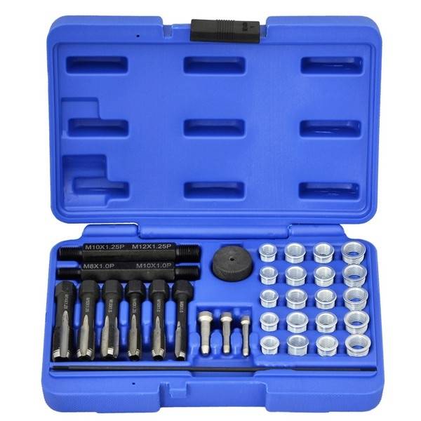 Un kit reparador de roscas de calentadores perfecto para el taller, que incluye 33 piezas: