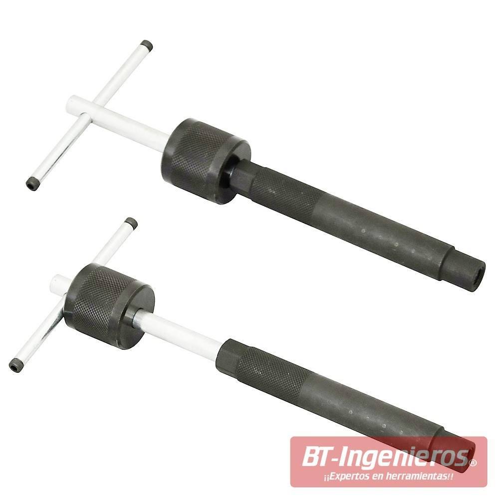 Mediante el martilllo de inercia, se puede tirar del calentador. Incluye también dos apaptadores para tirar desde la parte interna del calentador, cuando estos se hayan partido justo por debajo del hexágono, a ras de la culata.