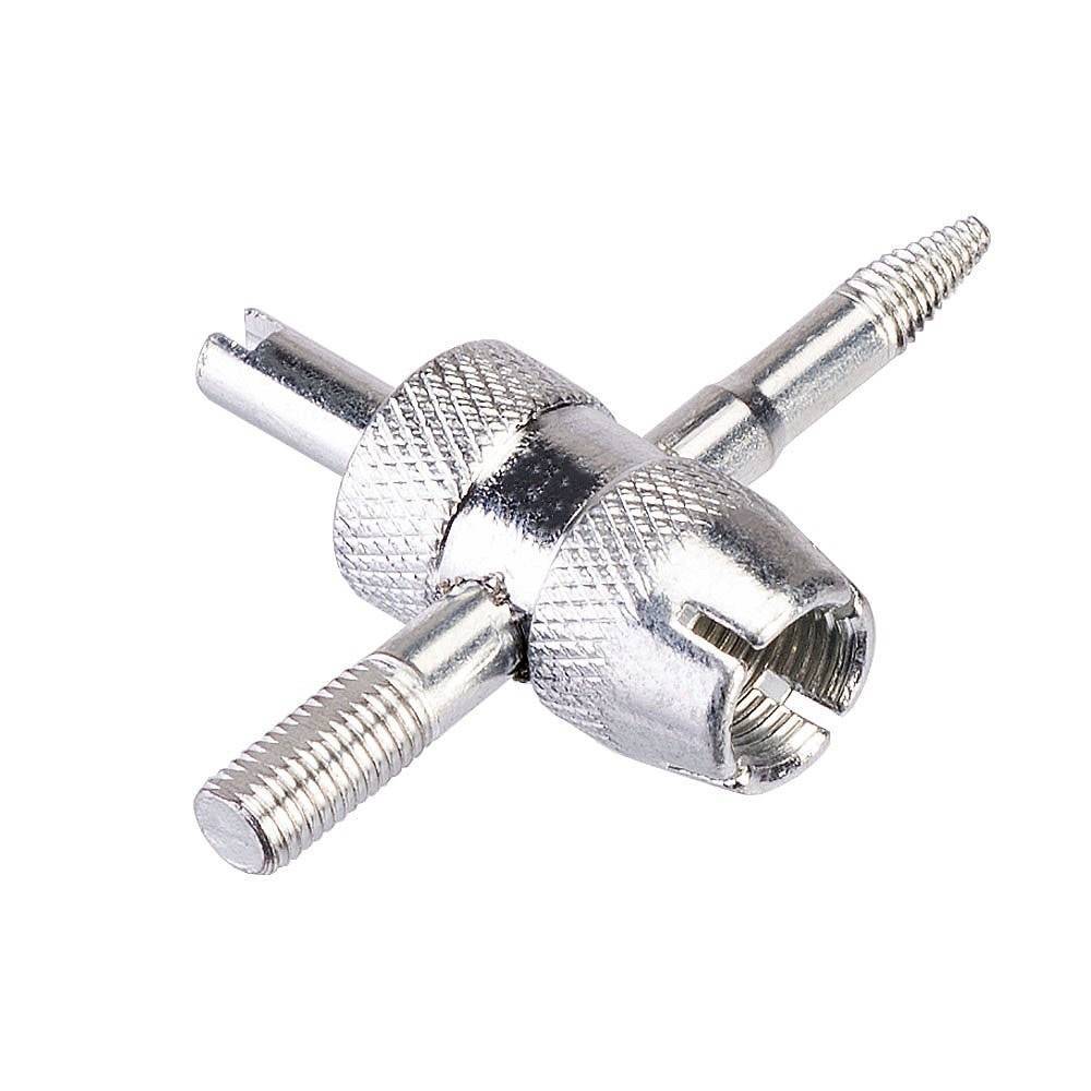 Herramienta para extracción, reparación y montaje de válvulas de neumáticos de coche, moto, bicicleta…Funciónes 4 en 1: Extractor de válvulas, terraja de reparación de válvulas rosca interior, terraja de reparación de válvulas rosca exterior e instalador de válvulas.