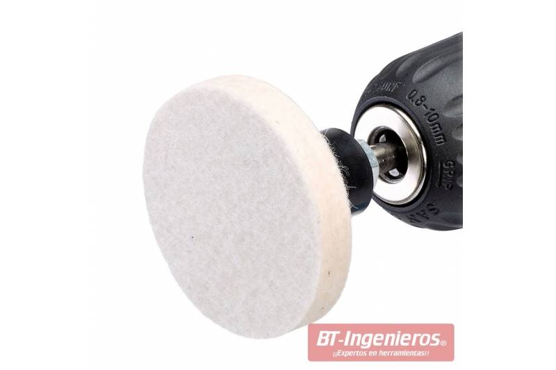 - 9. Disco de fieltro para pulido. Dimensiones. Diámetro 53 MM | Grosor 8 MM.