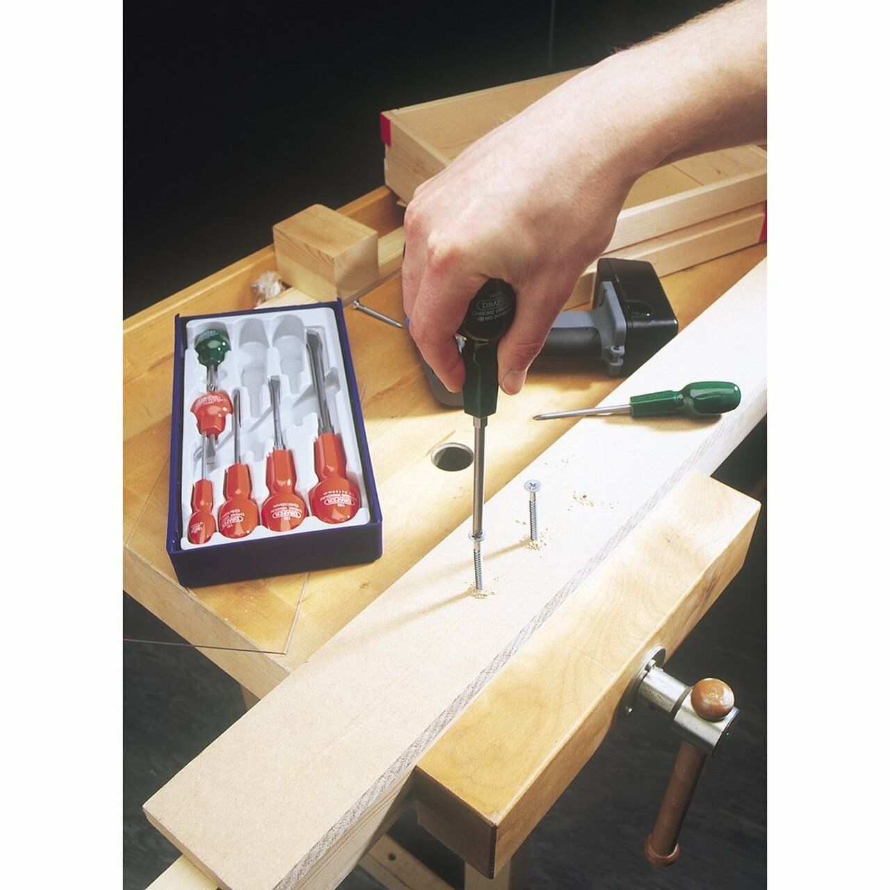 - Juego de destornilladores con estructura completa de acero Cromo - Vanadio (varilla + punta) con acabado cromado y puntas arenadas de elevada resistencia frente al desgaste prematuro y oxidación, diseñados para alta durabilidad y uso habitual en aplicaciones generales y taller.
