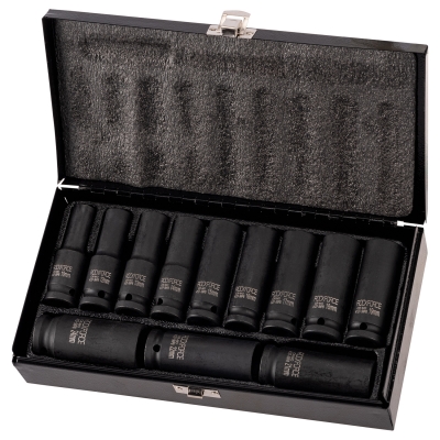 Juego de vasos para pistolas de impacto de 1". Un juego completo con las medidas de 22 a 50 mm. de gran utilidad en el taller. Agarre seguro, soportan altos pares de apriete y acceden a tuercas más profundas gracias a los 81 mm. de largo.