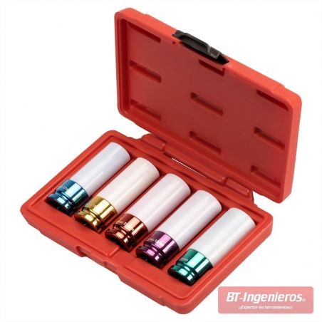 Juego de 5 llaves de vaso para llantas de aluminio 17-23 mm. Cr-Mo