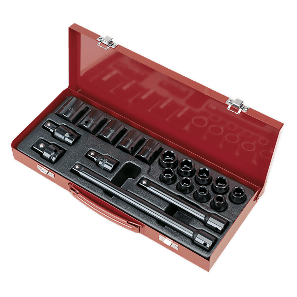 Conjunto de 19 vasos de impacto de alta calidad con adaptadores y alargaderas.