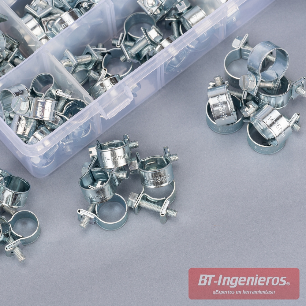 Surtido de 135 abrazaderas de manguera con tornillo y tuerca, para el sellado de mangueras y tuberías de aire y combustible.