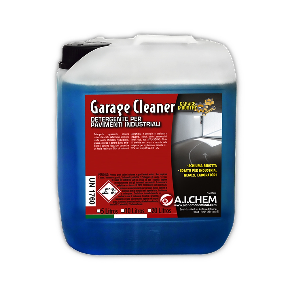 GARAGE CLEANER es un detergente alcalino universal diseñado para enfrentar los retos más difíciles de limpieza en garajes, talleres y diversas superficies industriales. Con su fórmula especializada, este producto garantiza resultados óptimos en la eliminación de todo tipo de suciedad intensa.
