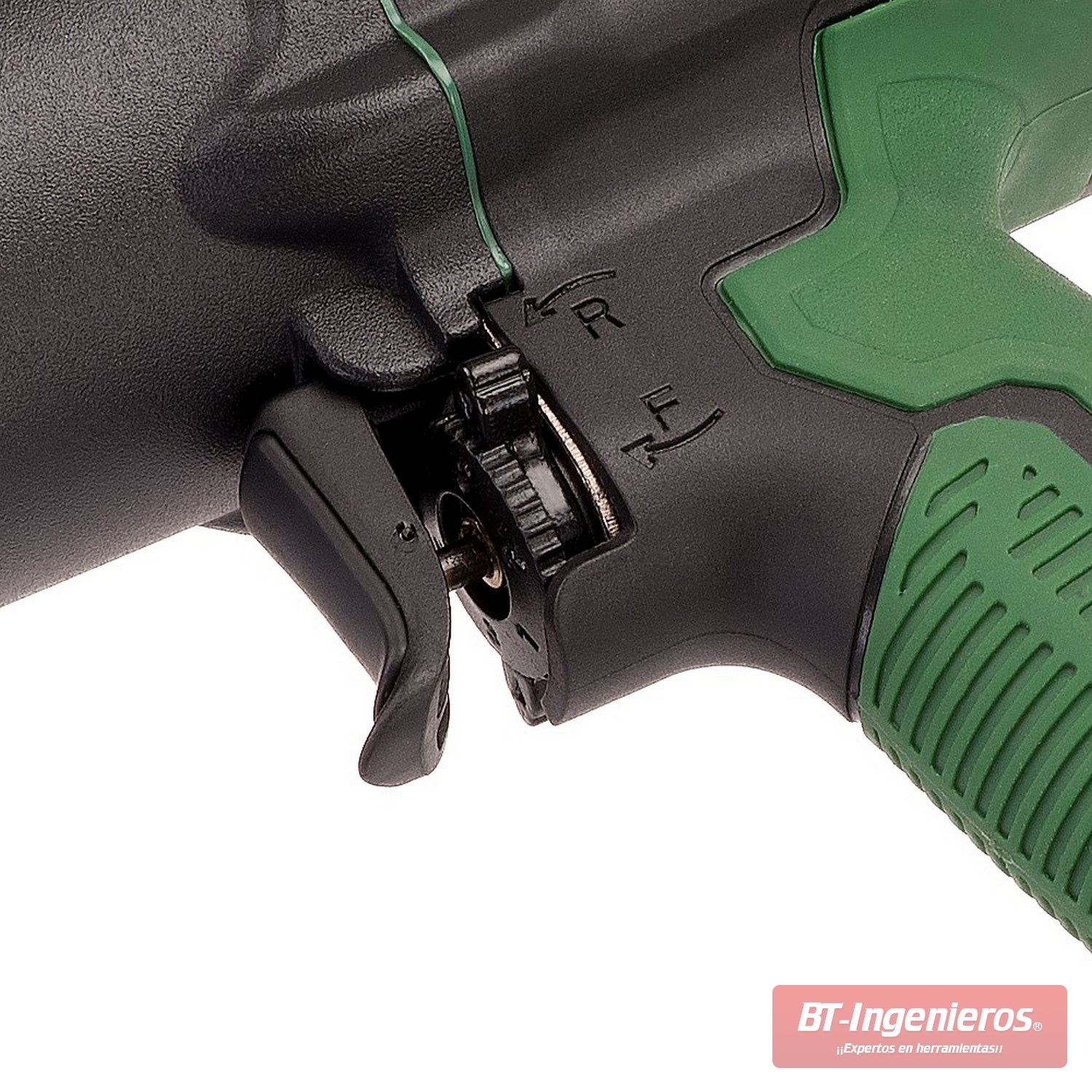 Presenta cuerpo composite con mango engomado para transmisión de bajas vibraciones al operario, gatillo de accionamiento sensible para control doble velocidad, regulador rápido de avance / retroceso, diseño ergonómico con cuerpo de 2 kG de peso.