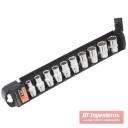 Juego de 10 vasos métricos de 1/2" con sistema Multi-Drive. Contenido: 9,10,11,12,13,14,15,17,18 y 19 mm.