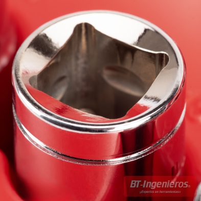 - Diseño Bi-hexagonal: Los vasos de 12 puntas garantizan un ajuste perfecto, minimizando el riesgo de dañar las tuercas o pernos.