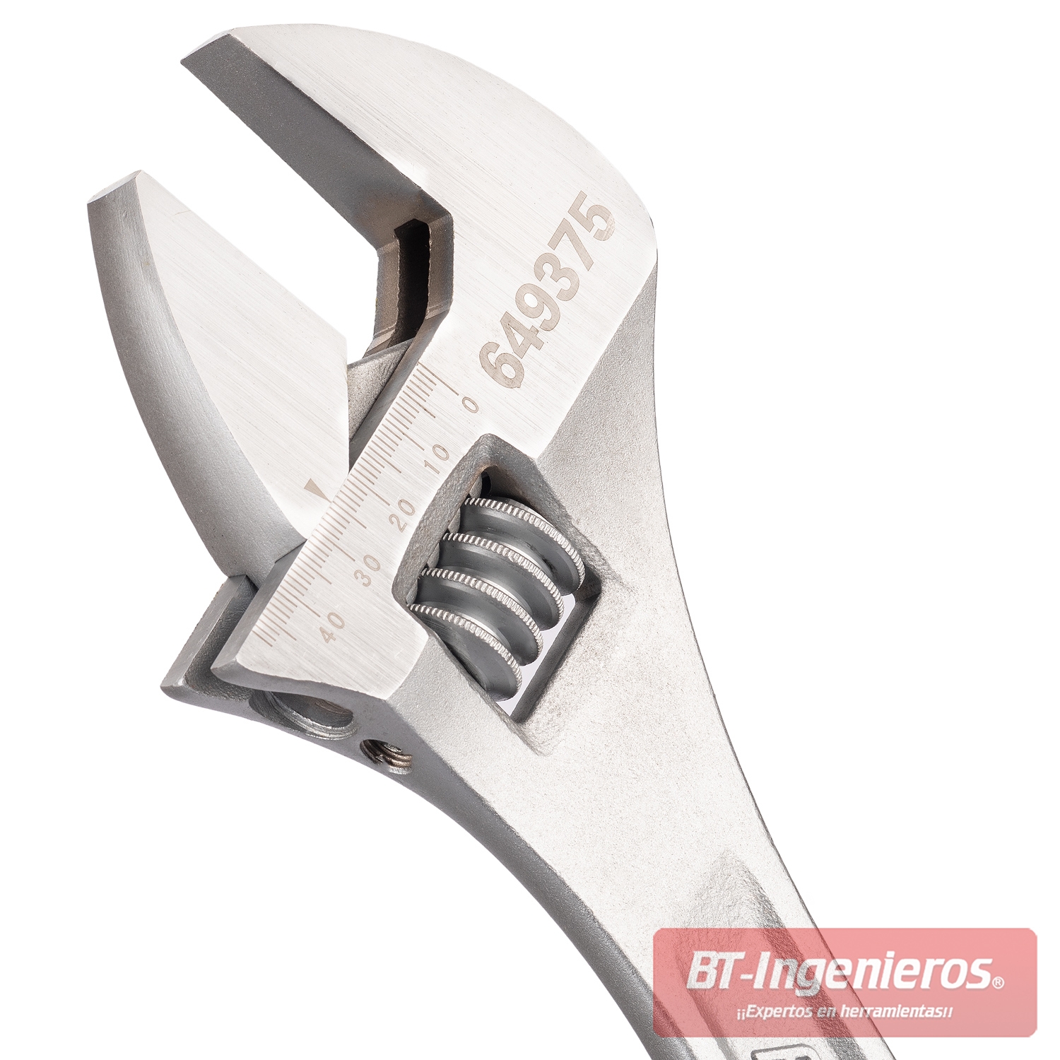 Llave ajustable con rueda de ajuste suave con mordazas pulidas para agarre estable de tuercas y tornillos hexagonales.