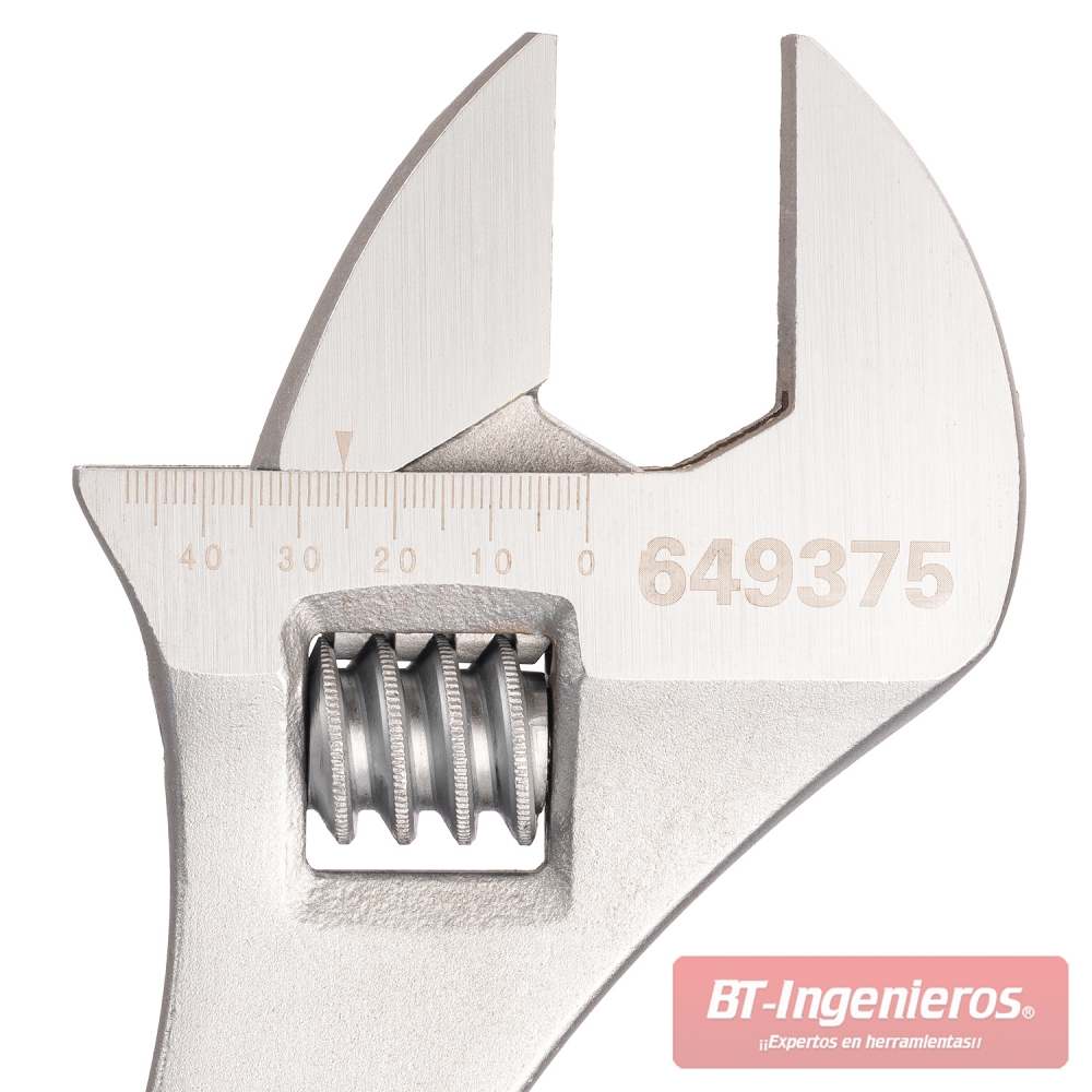 - Llave inglesa ajustable de gran tamaño para usar en numerosos trabajos, de apriete y desapriete de tornillos y tuercas hexagonales de 0 a 46 mm.