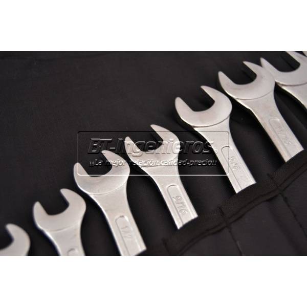 - 11 llaves en pulgada de: 1/4", 5/16", 3/8", 7/16", 1/2", 9/16", 5/8", 11/16", 3/4", 13/16" y 7/8".